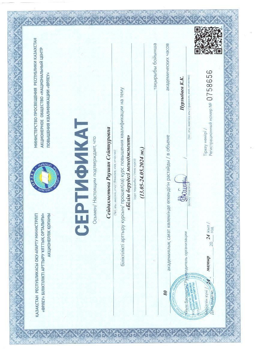 » » Сейдахметова Раушан Сейтнуровна