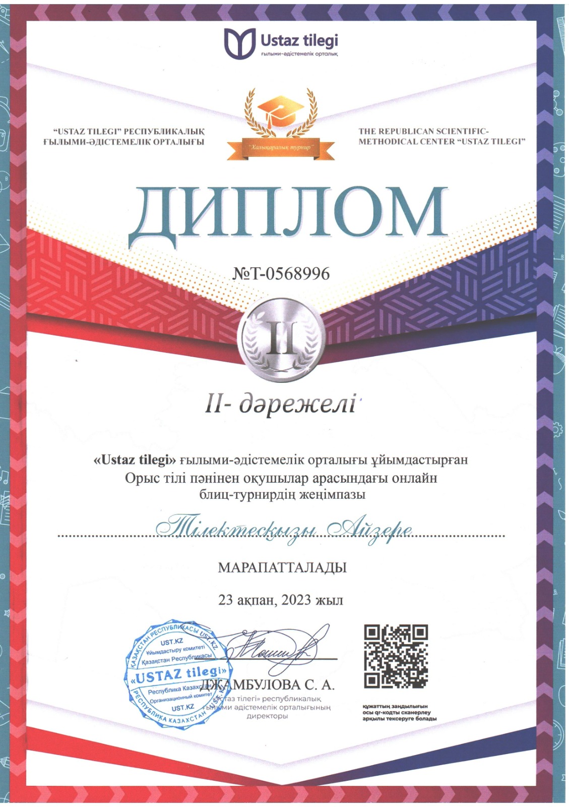 Тилектескызы Айзере 2 орын